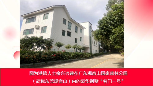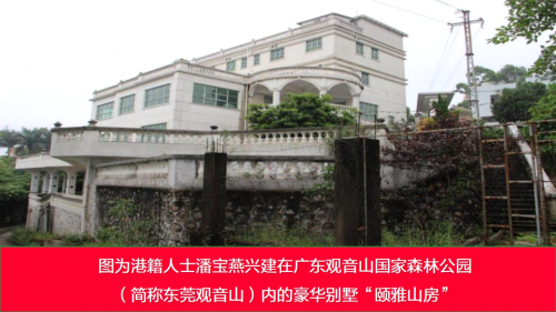 但是,就在这座具有“南天灵秀胜境,森林康养福地”之称的国家森林公园内,陆续修建20余栋别墅,在众多别墅中,规模最大的是位于公园主干道吉祥路两旁的香港籍人士潘某的“颐雅山房”一栋和香港籍人士余某的“名门一号”共二栋。